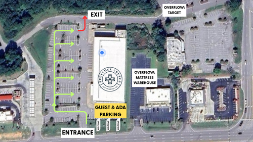 Parking Overflow: Should our parking lot become full, you may be guided to park in the Target parking lot. If so, we will have members from our Parking Team waiting to direct you to those designated spaces. Those team members will also offer you a shuttle ride up to our building.